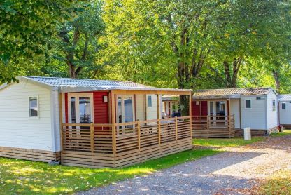 • Mobil-home 4/8 pers. - env. 34 m² : séjour avec coin cuisine équipé (lave-vaisselle inclus) et canapé convertible 2 places, chambre avec 1 lit double (160 cm), 2 chambres avec chacune 2 lits simples. Chauffage et climatisation. Terrasse couverte avec salon de jardin et transats.