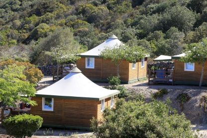 • Lodge Maasaï 2/4 pers. - env. 25 m² : habitat toilé, séjour avec coin cuisine équipé, chambre avec 1 lit double, chambre avec 2 lits simples. Sanitaires complets. Terrasse couverte avec salon de jardin et transats.