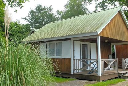 • Chalet bois 4 pers. - env. 29 m² : séjour avec coin cuisine équipé, chambre avec 1 lit double, chambre avec 2 lits superposés. TV. Terrasse couverte avec salon de jardin.
