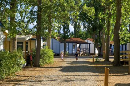 • Mobil-home MER 5 pers. - env. 22 m² : séjour avec coin cuisine équipé, chambre avec 1 lit double, chambre avec 2 lits superposés et 1 lit simple. Terrasse avec salon de jardin.