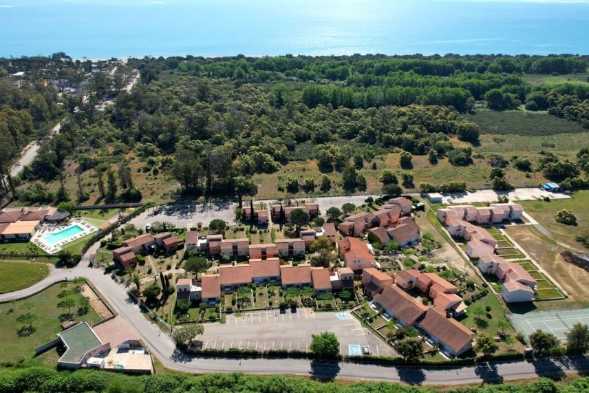 À 10 km en contrebas de Venzolasca, à 400 mètres de la plage de sable fin de Cap Sud, la résidence A Mucchiatana s’étend sur un domaine planté d’eucalyptus offrant un accès direct à la mer. La réserve naturelle de Mucchiatana jouxte la résidence.