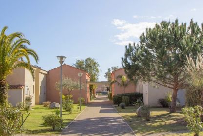 • Mini villa 5 pers. - env. 55 m² : séjour avec coin cuisine équipé (lave-vaisselle inclus), chambre avec 2 lits simples. À l’étage, chambre avec 1 lit double et coin nuit avec 1 lit simple ou mezzanine avec 3 lits simples. Climatisation. Terrasse couverte avec salon de jardin.