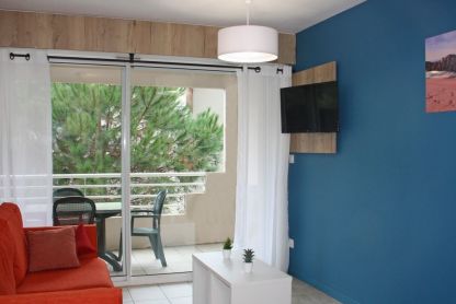 • Studio 2 pers. PMR - env. 25 m² : séjour avec coin cuisine équipé, canapé-lit 2 places et TV. Balcon avec salon de jardin. Ajout d’un lit bébé impossible. PMR : logement accessible aux personnes à mobilité réduite.