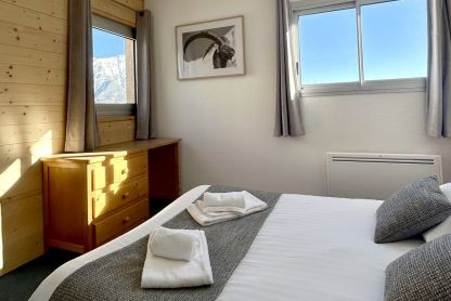 • Chambre 4 pers. - env. 24 m² : 1 lit double et 2 lits simples, salle d’eau, TV. Ajout d’un lit bébé possible.