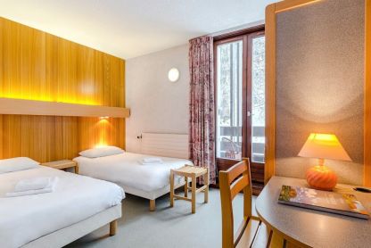 • Chambre twin - env. 15 m2 : 2 lits simples, salle d’eau, TV et Wi-Fi. Ajout d’un lit bébé possible.