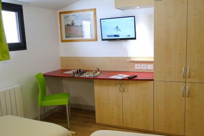 • Chambre 2 pers. PMR - env. 20 m² : 2 lits jumeaux, salle d’eau, TV. PMR : chambre accessible aux personnes à mobilité réduite.