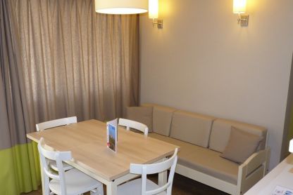 • Appartement 4 pers. - env. 35 m² : au premier étage, séjour avec coin cuisine équipé (lave-vaisselle inclus), chambre avec 1 lit double, chambre avec 2 lits simples. TV. Balcon. Ajout d’un lit bébé possible.
