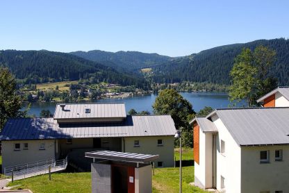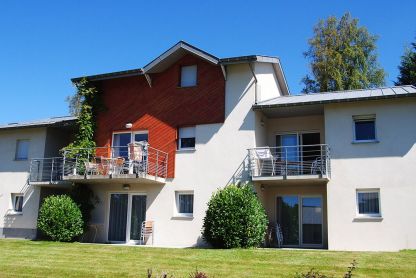 • Appartement 6/7 pers. duplex - env. 46 m² : au rez-de-chaussée, séjour avec coin cuisine équipé, TV et canapé-lit gigogne, chambre avec 2 lits simples. À l’étage, chambre avec 3 lits simples et une deuxième salle d’eau. Terrasse ou balcon avec salon de jardin, exposition sud et vue sur le lac. PMR : 1 appartement accessible aux personnes à mobilité réduite.