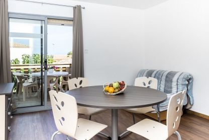 • Appartement 2/3 pers. - env. 30 m² : séjour avec coin cuisine équipé (lave-vaisselle inclus), banquette-lit 1 place et TV, chambre avec 2 lits simples.