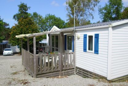 • Mobil-home 6 pers. - env. 28 m² : séjour avec coin cuisine équipé et TV, chambre avec 1 lit double, 2 chambres avec chacune 2 lits simples. Terrasse avec salon de jardin. Ajout d’un lit bébé impossible.