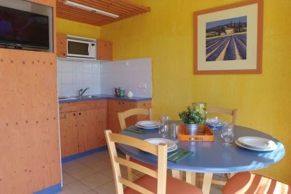 • Appartement 6 pers. - env. 38 m² : séjour avec coin cuisine équipé et TV, chambre avec 1 lit double, chambre avec 2 x 2 lits superposés. Terrasse ou balcon avec salon de jardin. Ajout d’un lit bébé possible.
