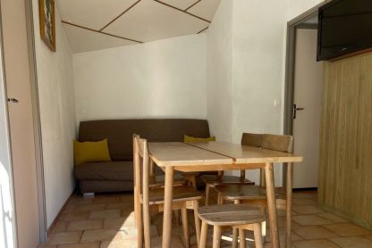 • Gîte 3/5 pers. - env. 30 m² : séjour avec TV, coin cuisine équipé et canapé-lit 2 places, chambre avec 2 lits superposés et 1 lit simple. Terrasse avec salon de jardin.